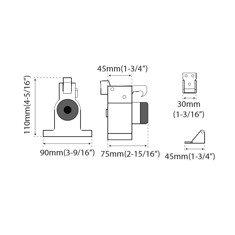 Floor-mount; catch attaches to door